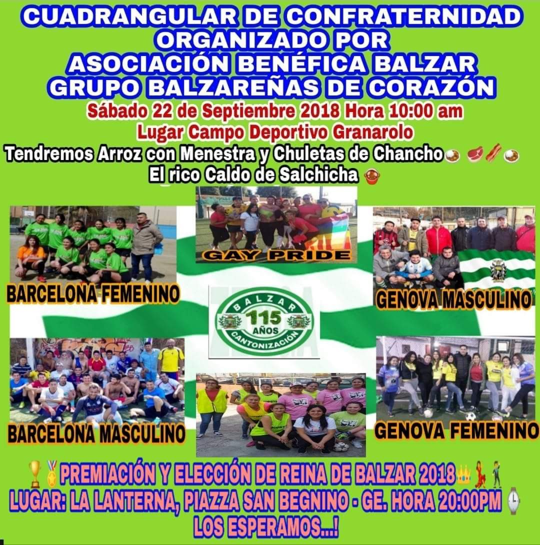En Génova existe una larga tradición de aficionados del fútbol afiliados a diferentes ligas/asociaciones, si bien, los campeonatos latinos funcionan de forma paralela, identificados como propios de los inmigrantes latinoamericanos (esencialmente ecuatorianos y peruanos, pero también de colombianos, dominicanos, chilenos o venezolanos). Torneos distantes también de las ligas de otros inmigrantes (como rumanos, albaneses, o marroquíes). Estos campeonatos representan un espacio-tiempo diferenciado de los usos de la ciudad, que visibiliza tanto hacia dentro de la comunidad ecuatoriana como hacia fuera. La única excepción acontece en el llamado torneo antirracista, organizado desde el año 1998 en el mes de junio por el Centro Social Auto Gestionado Zapata, asociación sin fines de lucro, en las canchas del equipo de futbol Sampierdarenese.
