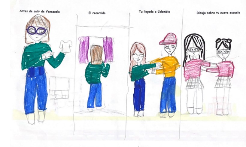Un segundo desafío intercultural es la discriminación o acoso escolar, donde se suscitan tensiones derivadas por rechazo a la nacionalidad y el uso incorrecto del gentilicio: “Cuando yo llegué a la escuela también me decían cosas así, me decían veneco, me decían gafufo cuatro ojos. Me decían que no debería estar aquí en Colombia” (Comunicación personal, 26 de octubre de 2023). Esta población consolida un fuerte rechazo por el uso de términos despectivos, haciendo frente a muestras de opresión, ya que los aspectos predominados en la sociedad menoscaban la perspectiva de lo diferente, mientras se generan estereotipos o lo identifican como un otro (Young, 2014).