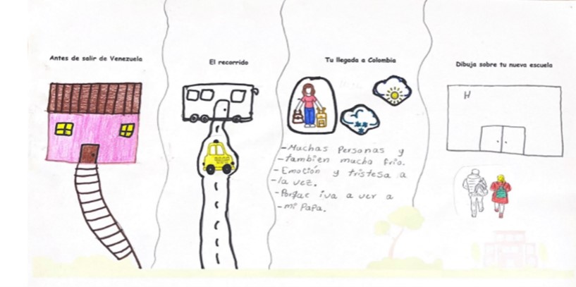 El viaje desde Venezuela representa para los niños un conjunto de emociones en el que se combinan la curiosidad por lo nuevo, la tristeza por dejar a sus seres queridos y el temor que perciben en sus cuidadores por no saber dónde están. (p. 41)
