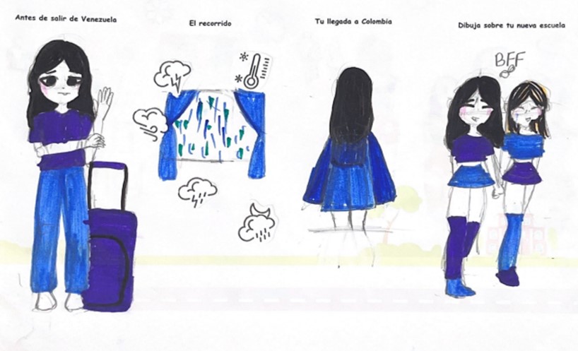 Otro elemento asociado a la trayectoria tiene que ver con las movilidades humanas emergentes. Los niños participantes narran experiencias de vínculos educativos interrumpidos con pares que experimentan movilidad pendular, revelando una dimensión poco explorada en la literatura: la migración como experiencia colectiva e interdependiente que genera puntos de apoyo relacionales complejos. Cuando estos niños se iban del país, los niños participantes del estudio mencionaban haber experimentado sensaciones de pérdida, nostalgia y desconfiguración de los procesos alcanzados emocionalmente. Este tipo de circunstancias se pueden evidenciar en sus narraciones: “También extraño a mi amiga, ella se regresó a Venezuela, era mi mejor amiga y luego no me contestó más mis mensajes y no me volvió a hablar, por eso me siento muy triste” (Comunicación personal, 19 de octubre de 2023).